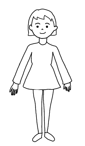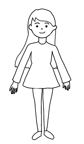髪が長い、など体の特徴を表す練習で使えるイラストです。
