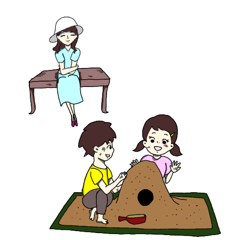 子供が砂場で遊んでいるイラスト