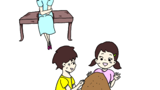 子供が親の膝にのっているイラスト