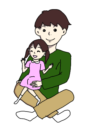 子供がお父さんのひざにのっているイラストです。