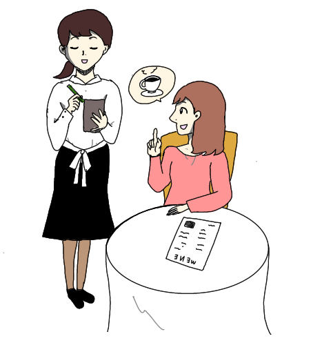 レストランで、女の人がコーヒーを注文しているイラストです。